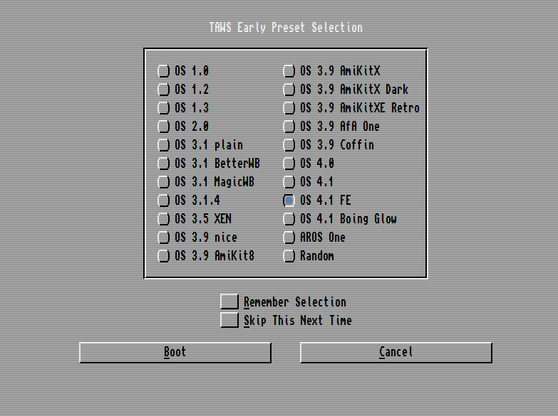 Die Seite braucht ein paar Sekunden. Anschließend wählt man, welches Amiga OS gestartet werden soll.