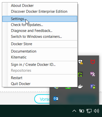 Über die Taskleiste mit Rechtsklick auf das Docker-Symbol die Einstellungen öffnen.