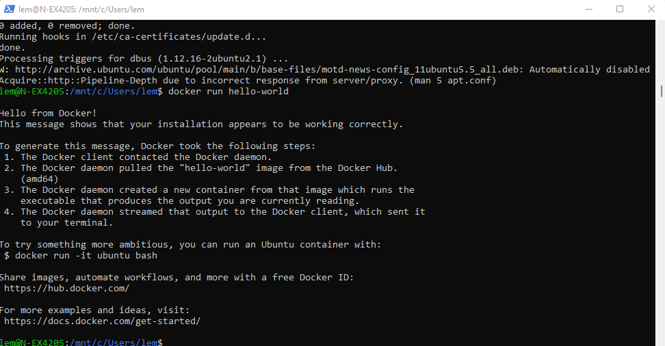 docker run hello-world -