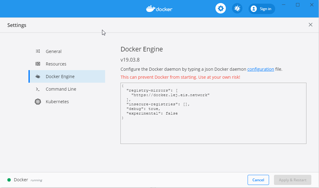 Ab v19.03.8 soll die docker-registry im Docker Engine angegeben werden.